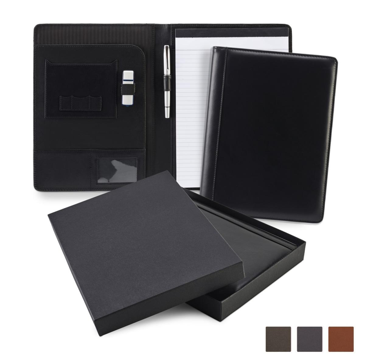 Accent Sandringham Nappa Leather A4 Conference Pad Holder. Available with matching or contrasting stitching or coloured lining, for a bespoke look. Ideal for embossed personalisation. Product features include Genuine Nappa Leather, Interior Pocket for notes or brochures, Pen loop, USB flash stick loop, CD pocket, Business card pocket, SIM Card Pockets, Fitted lined pad, Supplied in a presentation box which can also be branded