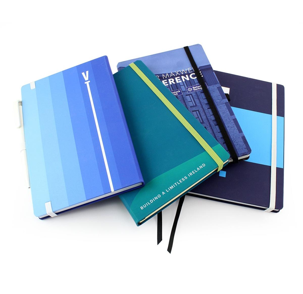 Designer A5 Casebound Notebook, with any image, design or pantone Product features include - Casebound hard backed notebook, Elastic Strap in a choice of colours to match or contrast, 96 pages, 192 sides of 80gsm sustainably sourced paper, Radius corners to each page , Sewn bound for a perfect 180 degree lie flat finish, Choose from lined, squared or plain cream paper, lined or dot white paper, 100% recycled paper available please enquire, Ribbon page marker in a choice of colour to match or contrast, Made to order in the UK, A matt or shiny foil blocked logo can be added for another dimension to your branding.