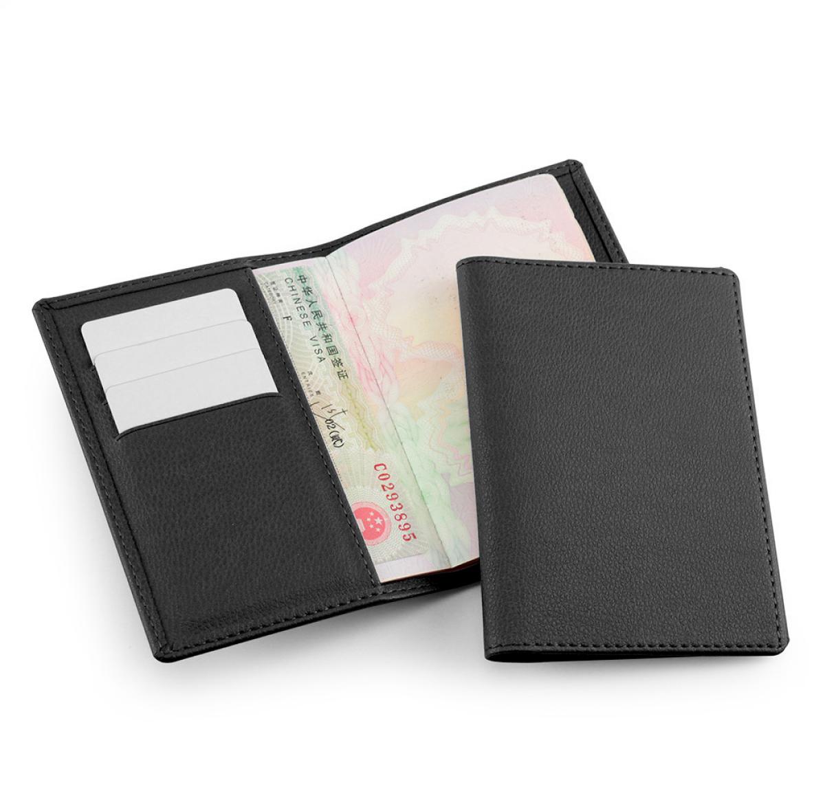 Black Passport Wallet in recycled Como, a quality material made from waste plastic bottles that would normally go to landfill. This high-quality vegan material has a subtle grain ideal for debossed, foil blocked or full colour branding. Product features include - Pockets either side to securely hold your passport, One with slots for credit or health cards, Folded and stitched edges for a quality finish, Black Stitching.
