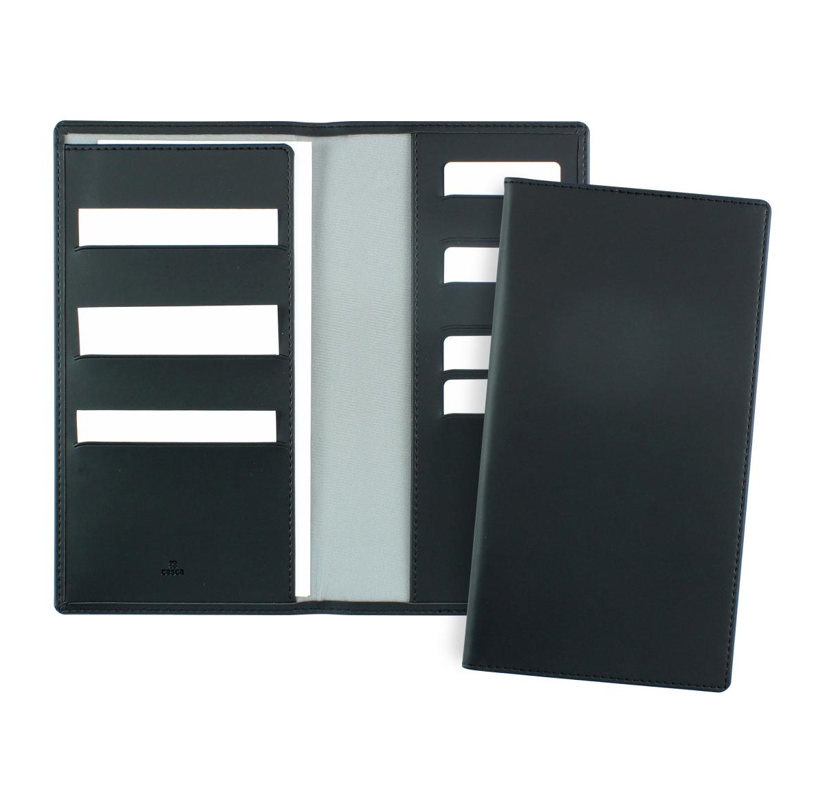 Black Travel Wallet in recycled Como, a quality material made from waste plastic bottles that would normally go to landfill. This high-quality vegan material has a subtle grain, ideal for debossed, foil blocked or full colour branding. Product features include - One pocket with slots to hold passports, Pocket behind to hold boarding cards, tickets and currency, One matching PU pocket with slots for credit cards, Folded and stitched edges for a quality finish, Soft recycled material that is REACH compliant.