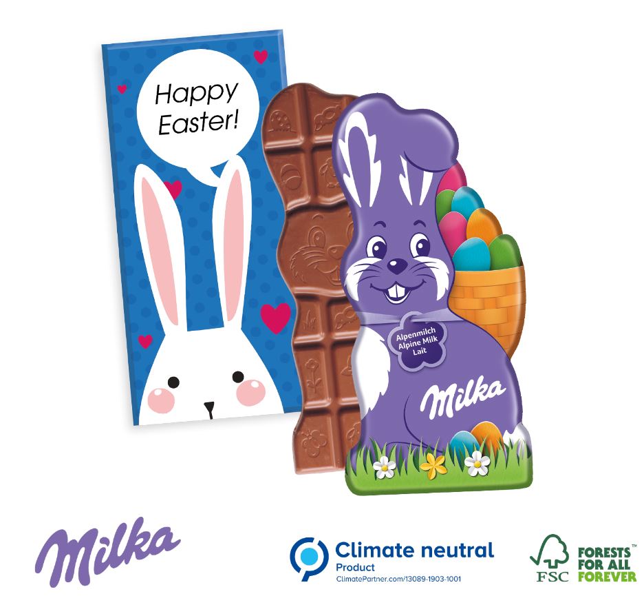 Milka Rabbit Shaped Chocolate Bar presented in a personalised box 85g