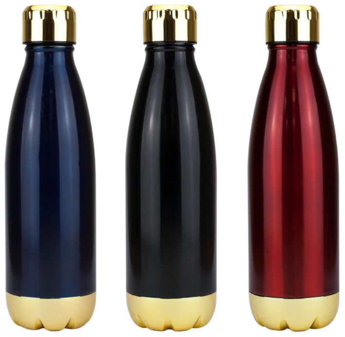 750ml Stainless Steel Insulated Vaccum Chilly Style Flask Gold Trim