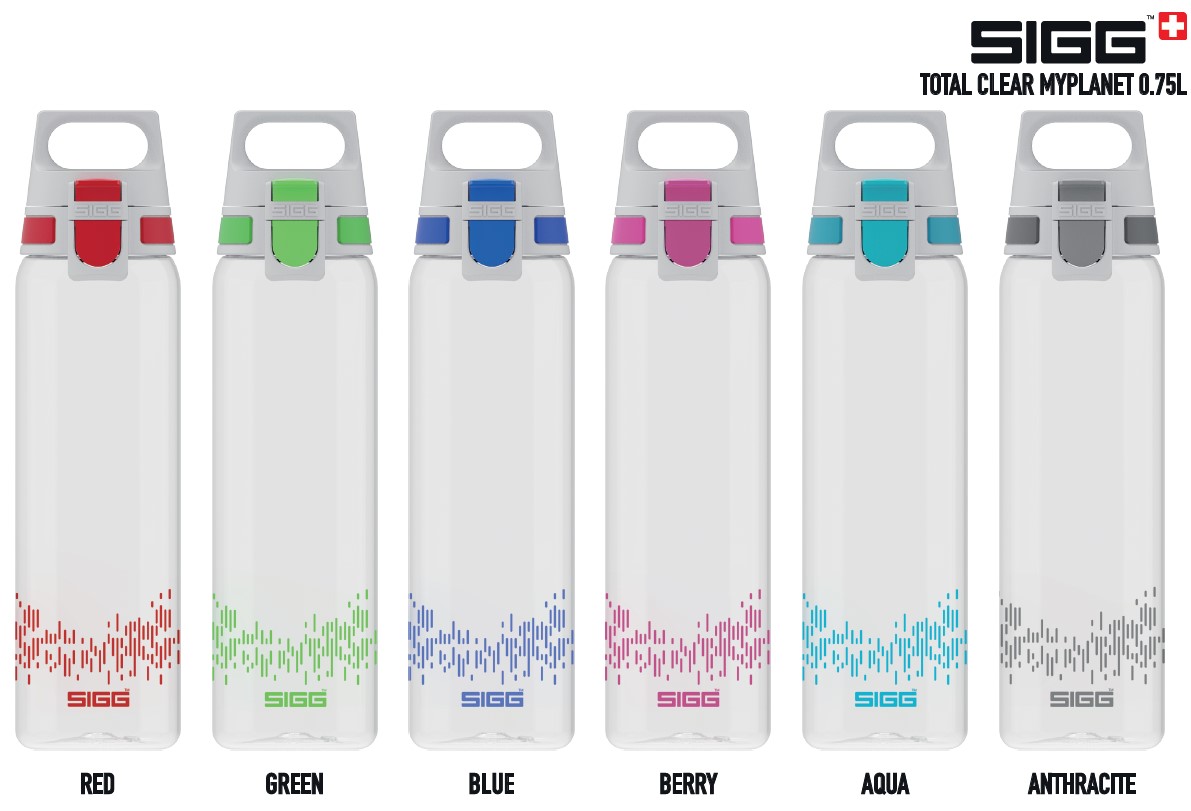 Total Clear One MyPlanet™ is here to stay. It is available in 0.75 L and offers impressive, scratch-resistant clarity, robust durability, and a useful ONE (one-hand) cap. SIGG ensures that plastic amounting to 50% of the weight of the bottle is recycled in new consumer goods during the manufacturing process.