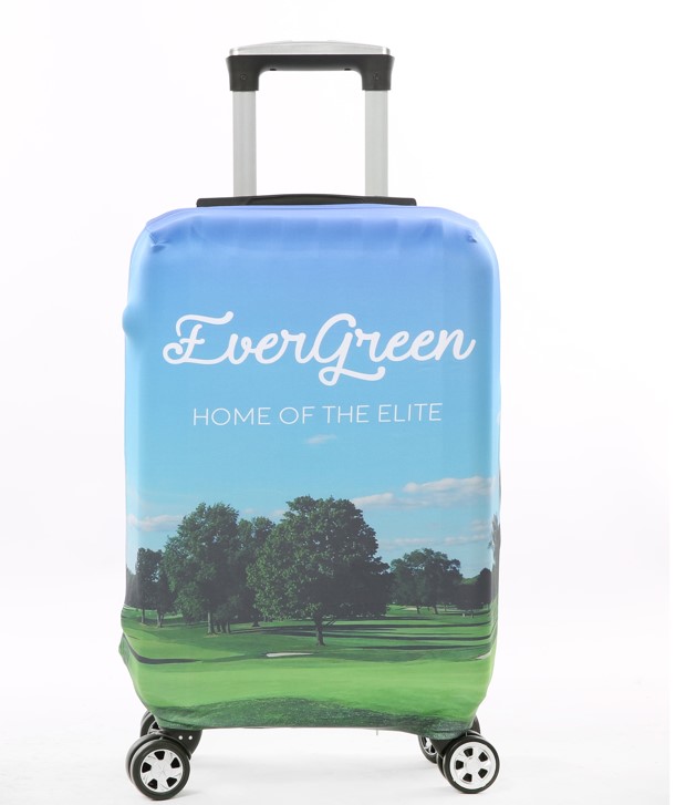 Fully bespoke dye sublimation full colour luggage cover printed in full colour, available in three sizes.