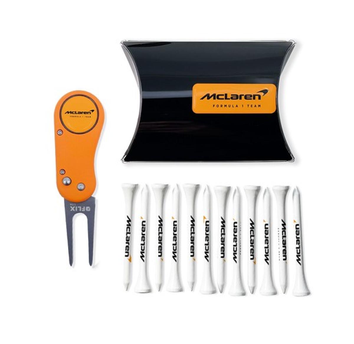 Includes packed loose 12 x 70mm or 54mm White bamboo tees printed up to 3 colours on the shank, 1 x Flix Lite automatic opening divot/repair tool with 25mm Black nickel full colour resin dome removable ball marker and resin dome to the pack