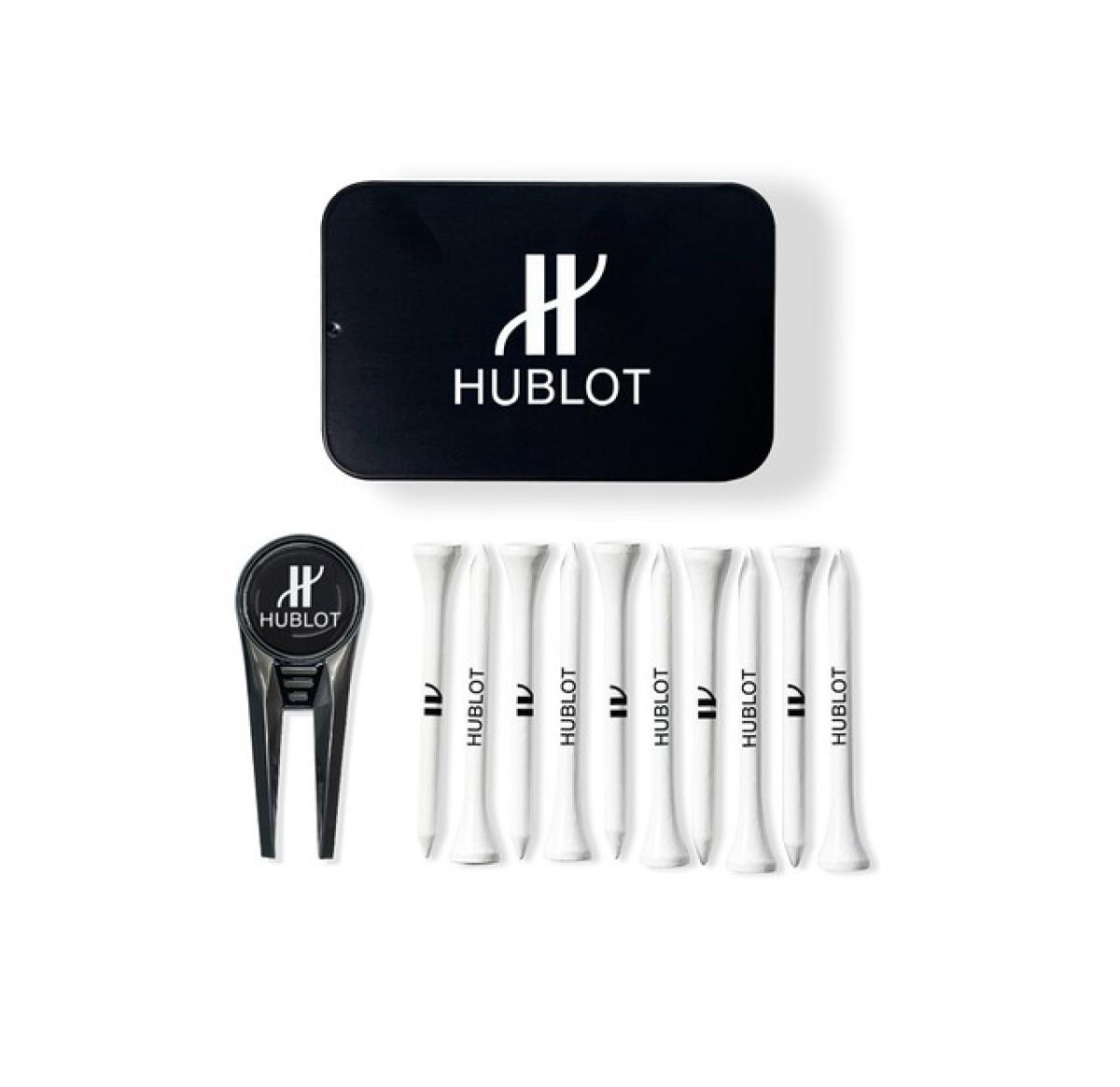 Includes packed loose 10 x 70mm or 54mm White bamboo tees printed up to 3 colours on the shank, 1 x Geo metal divot/repair tool with 25mm Black nickel full colour resin dome removable ball marker and print to the tin