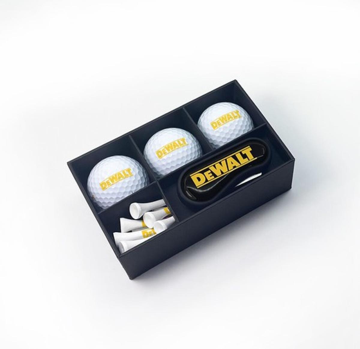 Includes 12 x 70mm or 54mm White bamboo tees printed up to 3 colours on the shank, 1 x Flix DS automatic opening divot/repair tool with 25mm Black nickel full colour resin dome removable ball marker, full colour resin dome to the rear of the handle and 3 x Wilson Ultra golf balls printed on 1 pole up to full colour. Must be ordered in 4's