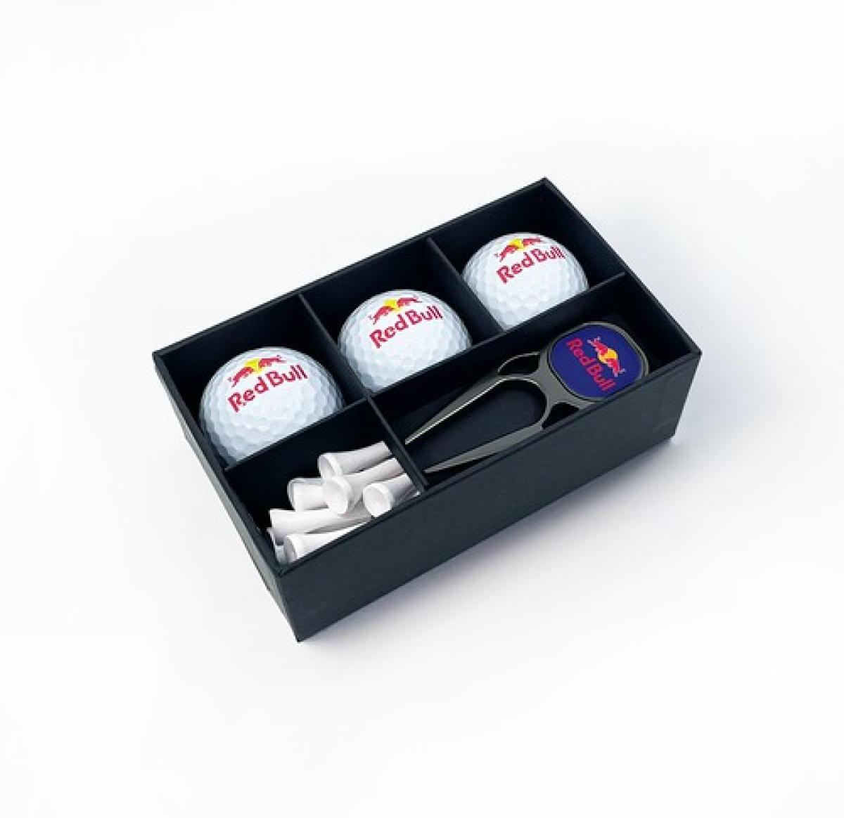 Includes 12 x 70mm or 54mm White bamboo tees printed up to 3 colours on the shank, 1 x Quatro metal divot/repair tool with removable full colour resin dome Gunmetal square ball marker and 3 x Wilson Ultra golf balls printed on 1 pole up to full colour. Must be ordered in 4's