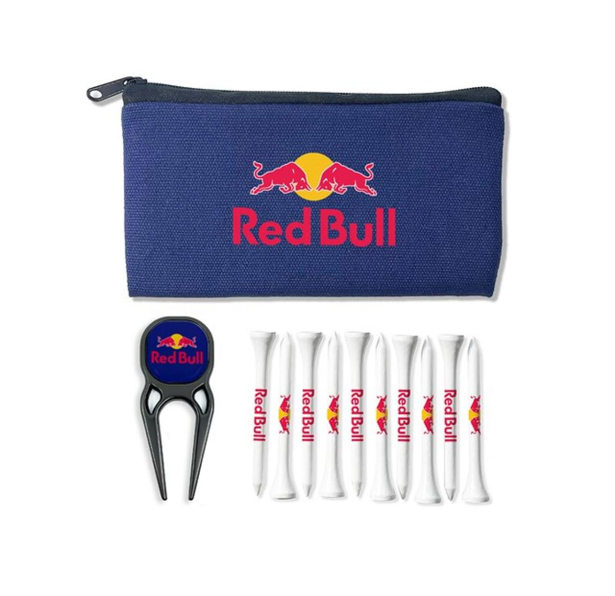 Includes packed loose 10 x 70mm or 54mm White bamboo tees printed up to 3 colours on the shank, 1 x Quatro metal divot/repair tool with removable Gunmetal full colour resin dome square ball marker and print to the bag