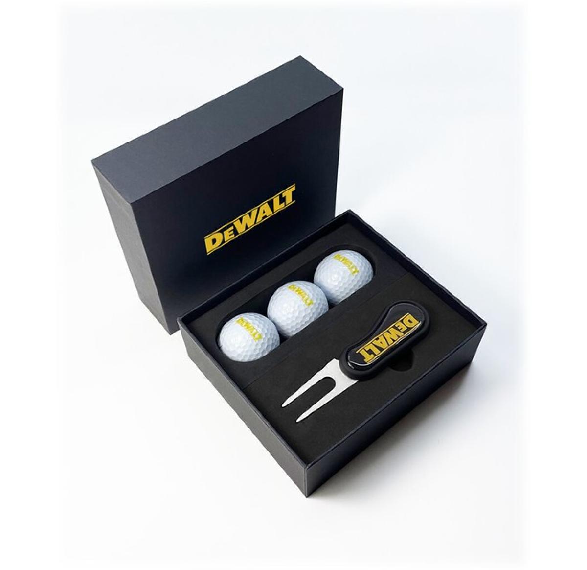 Includes 3 x Wilson Ultra golf balls printed on 1 pole up to full colour sat in an EVA insert, 1 x Flix DS automatic opening divot/repair tool with 25mm Black nickel full colour resin dome removable ball marker and full colour resin dome to the rear of the handle sat in an EVA insert and up to full colour digital print to the box. Must be ordered in 4's