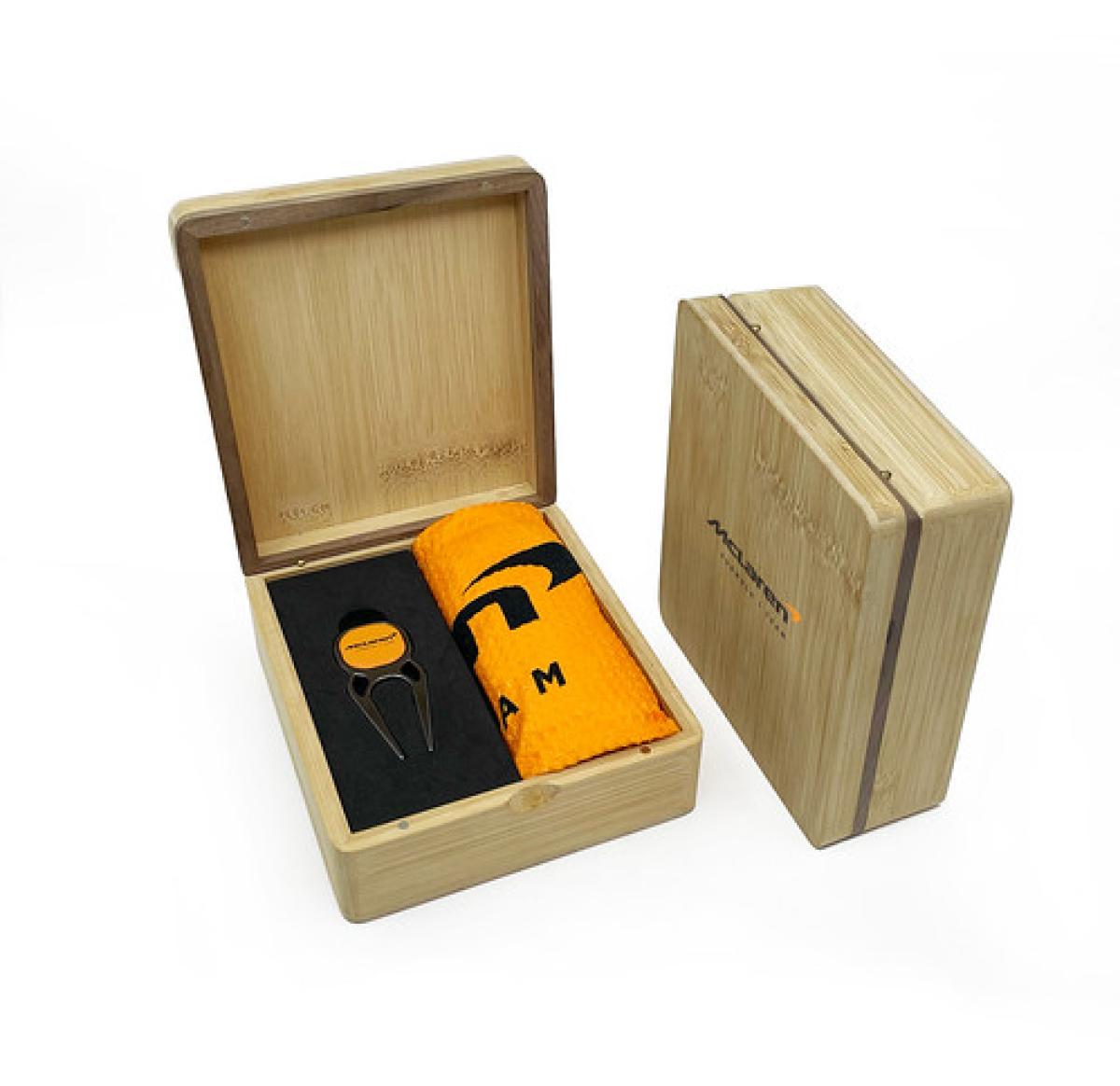 MINI HINGED MAGNETIC BAMBOO TOWEL AND QUATRO GOLF PRESENTATION BOX