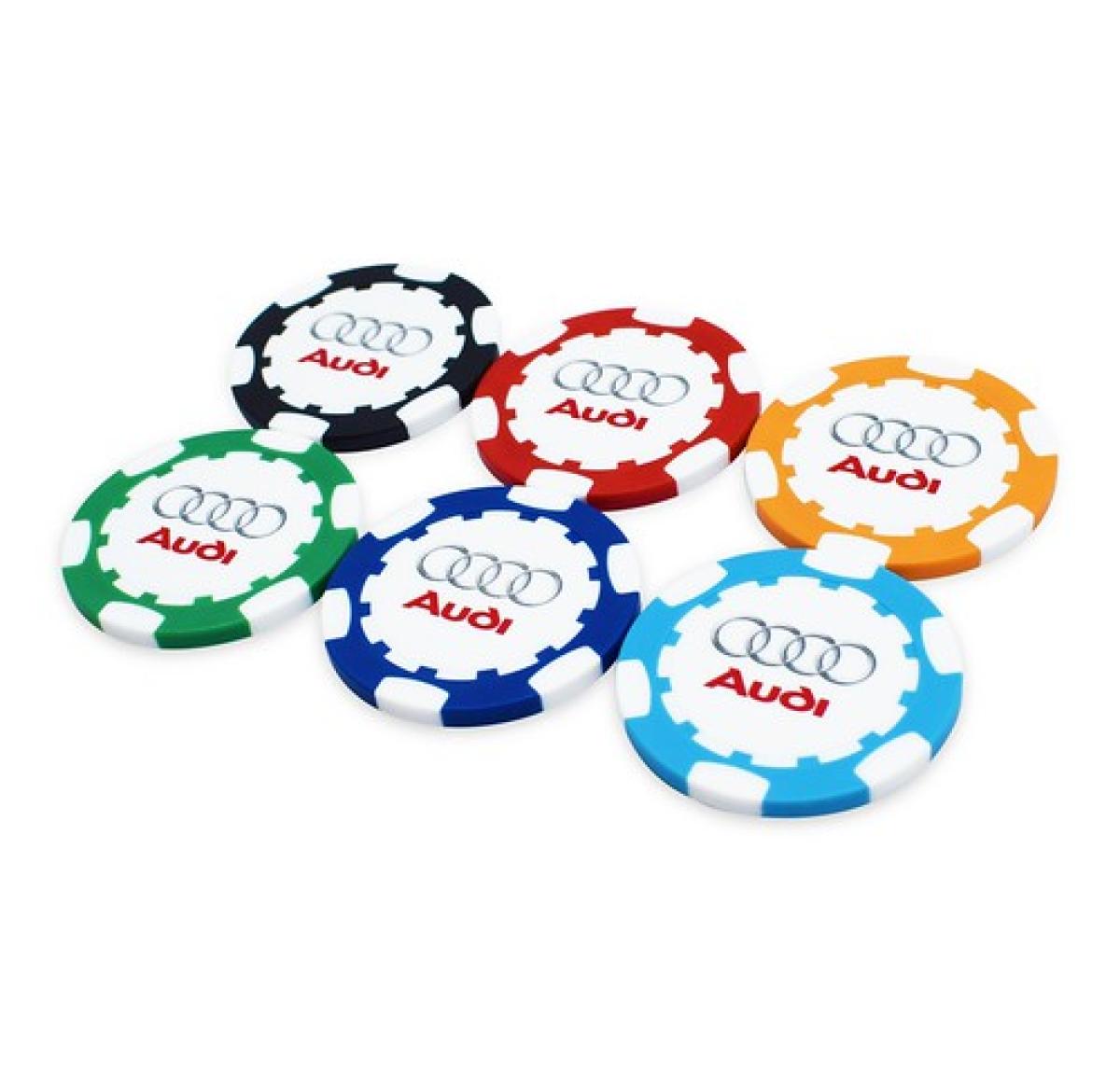 Pokerchip : Black-White, Red-White, Darker Blue-White, Light Blue-White, Green-White, Orange-White. Removable Ball Marker : Black Nickel