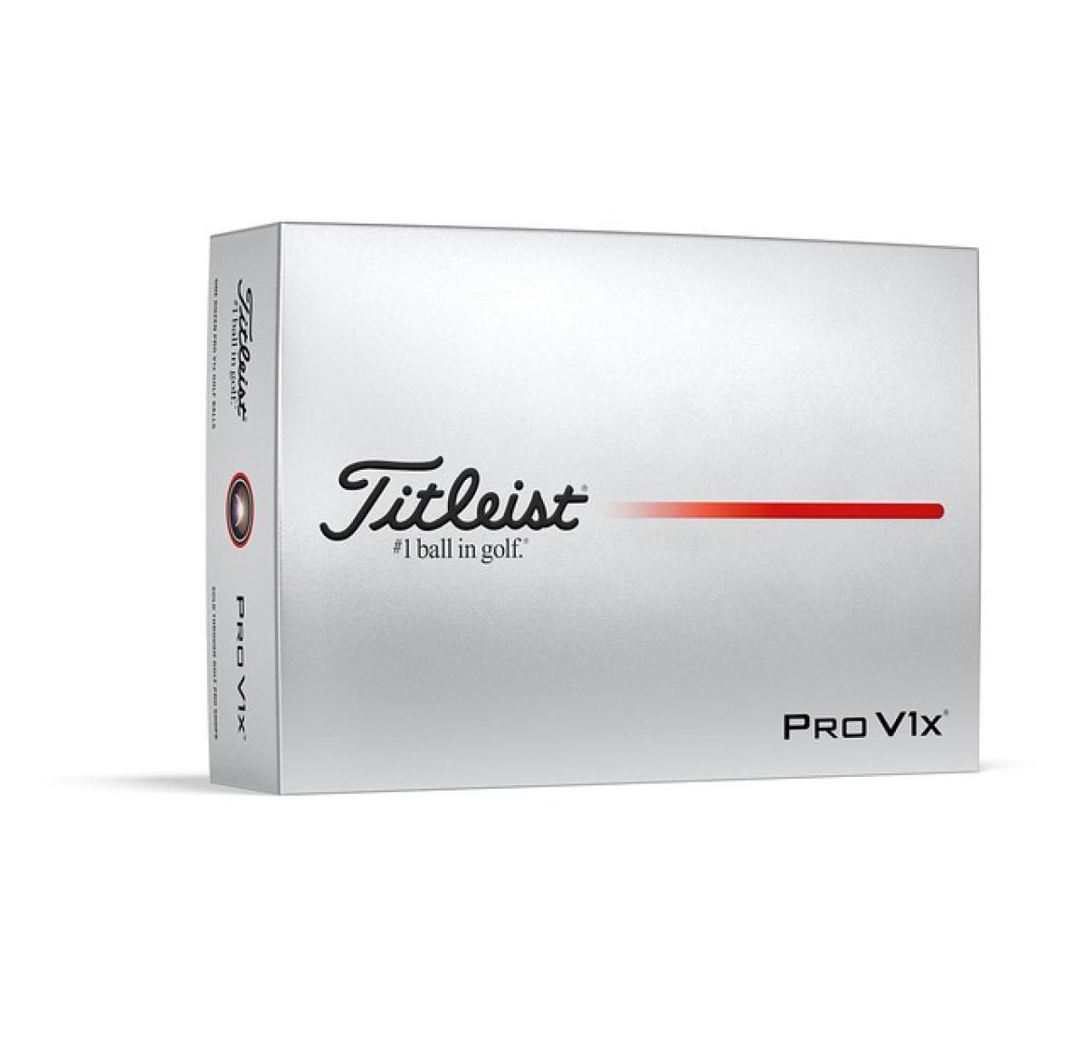 Titleist Pro V1X Golf Balls (4 piece Urethane) 2025 version, printed on 1 pole up to full colour. Boxed in dozen boxes with 4 sleeves of 3 balls in each box. Price per dozen (per 12 balls)