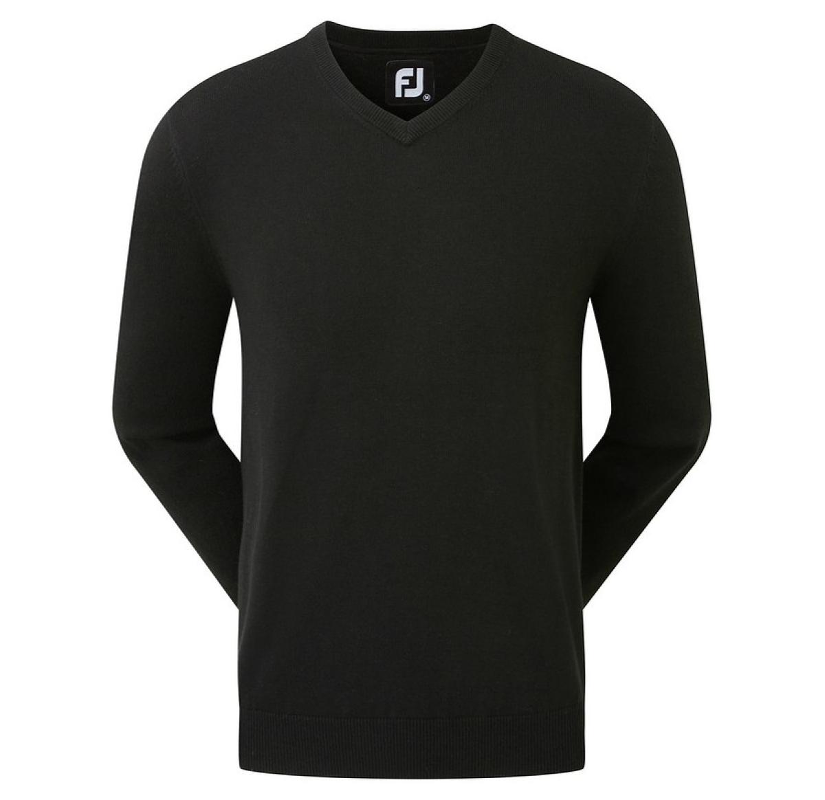 FJ (Footjoy) Gent's Wool Blend V-Neck Golf Pullover. Contrast FJ logo on the rear yoke and your logo embroidered to the wearer's left chest. 40% Polyester, 20% Wool, 20% Acrylic and 20% Nylon. Elasticated cuffs and waistband for a secure comfort fit. Sizes S-3XL