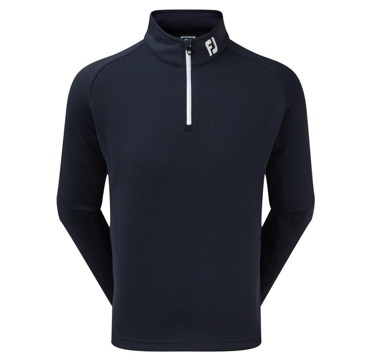 FJ (Footjoy) Gent's Chill-Out Quarter Zipped Pullover with FJ logo to the wearer's left collar and rear yoke and your logo embroidered to the wearer's left chest. Stretch double layer flat back ribbed knit fabric with moisture wicking technology. 100% Polyester