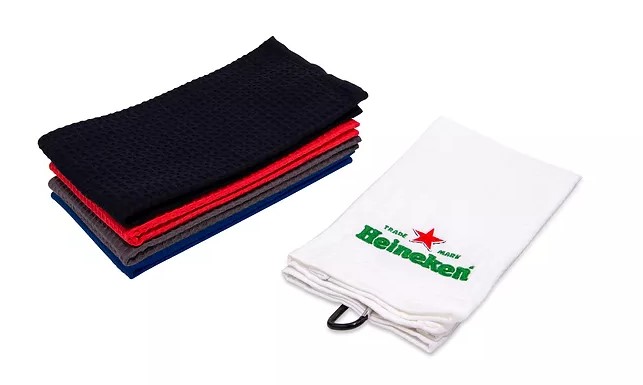 Super absorbant 280gsm waffle towel with carabiner clip, includes embroidery to one position with no limit on stitches.