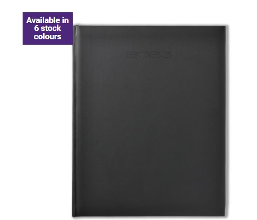 Contemporary Smart Matt Finish Diary with Padded Covers and Blind Embossed Year Date. White FSC Recycled Pages with White Ribbon Marker. Full Colour Maps. SmoothGrain range also includes Pocket, A5 and A4 size diaries. Matching Notebook available.