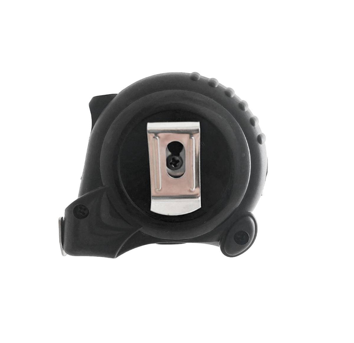 Easy read tape measure with belt clip on the back, sliding lock mechanism and an easy lock on the bottom. With black rubber casing and metric and imperial graduation and Class II accuracy approved.