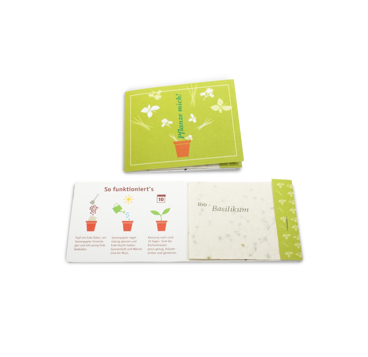 A customised paper card, with 3 x sheets of seed paper inside. Print your design full colour on the card and choose from the standard flower mix of seeds. The seed paper is 70 x 90 mm.