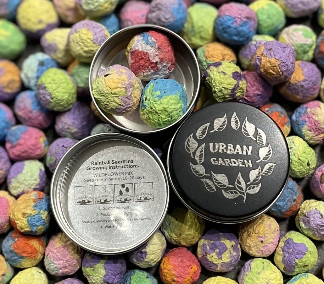 Rainballs are made in the UK, keeping the carbon footprint of this product low. The Rainballs are constructed from post-consumer recycled paper and filled with mixed wildflower seeds.
