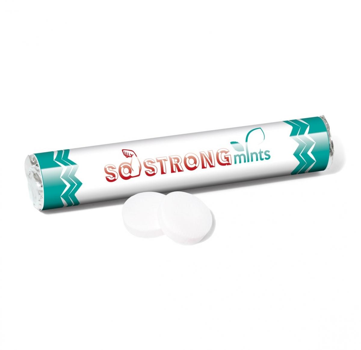 Our NEW So Strong Mints are refreshingly strong! with a fully branded flat label wrap.