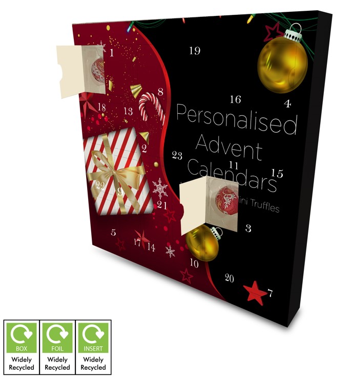 Desktop sized luxury Advent Calendar filled with Lindor milk chocolate mini truffles and personalised with a full colour print to the entire box.