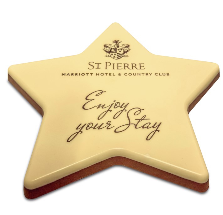 Milk and white chocolate star shaped bar, personalised with an edible ink print.
