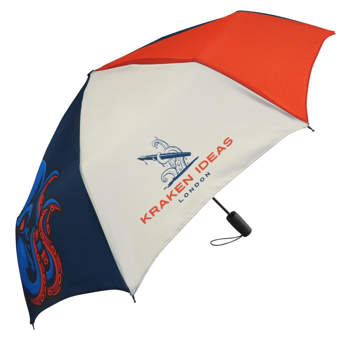 Our superb Executive Telescopic umbrella but with a totally customisable UK made canopy, automatic function for quicker opening and closing, rubber coated handle with carry strap and option for printed decal. choose any combination of stock panels and total sub panels to create fully custom canopies