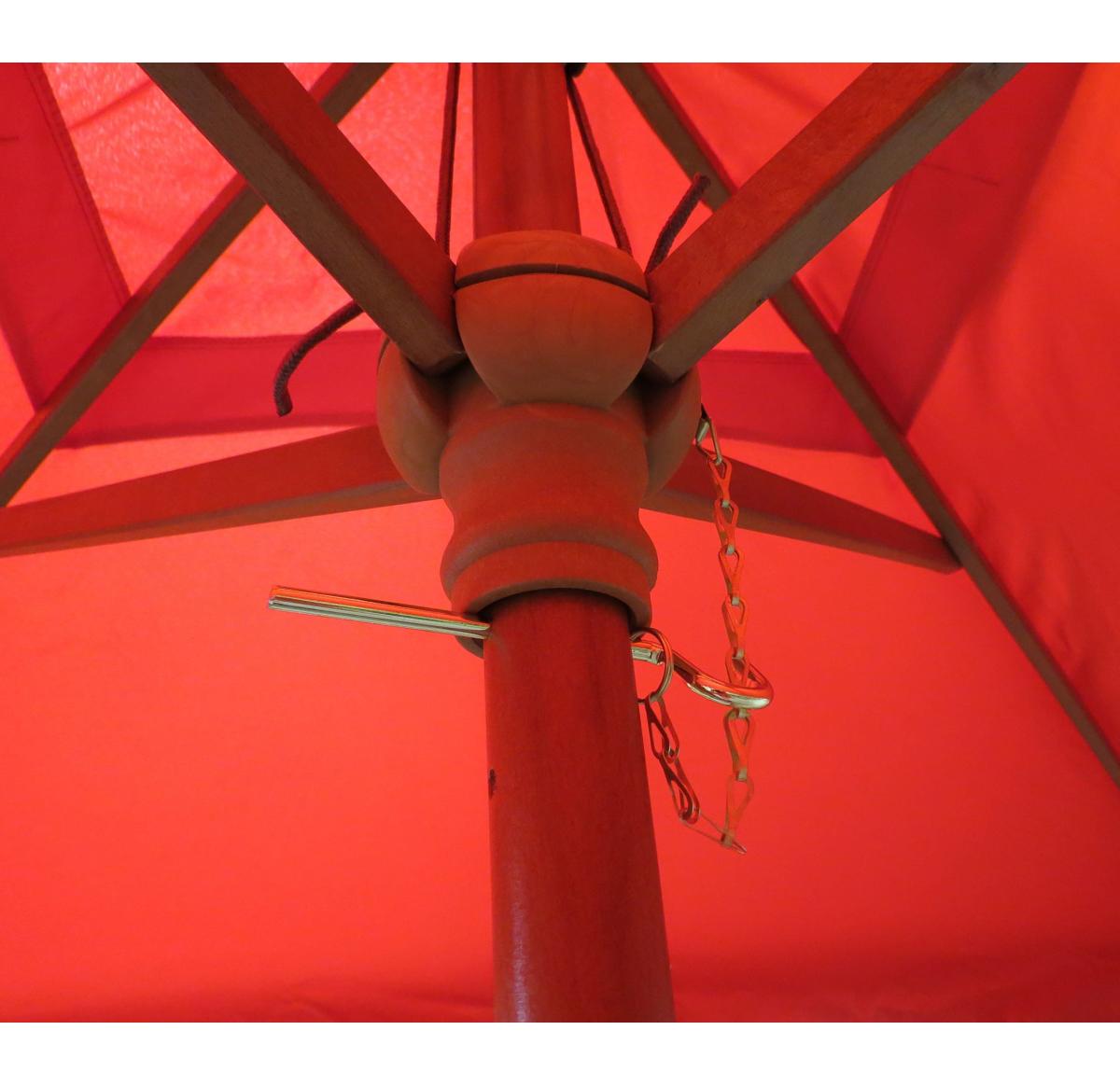 Sizable two metre square parasol with wooden stem Heavy duty wooden stem and ribs with pull cord opening