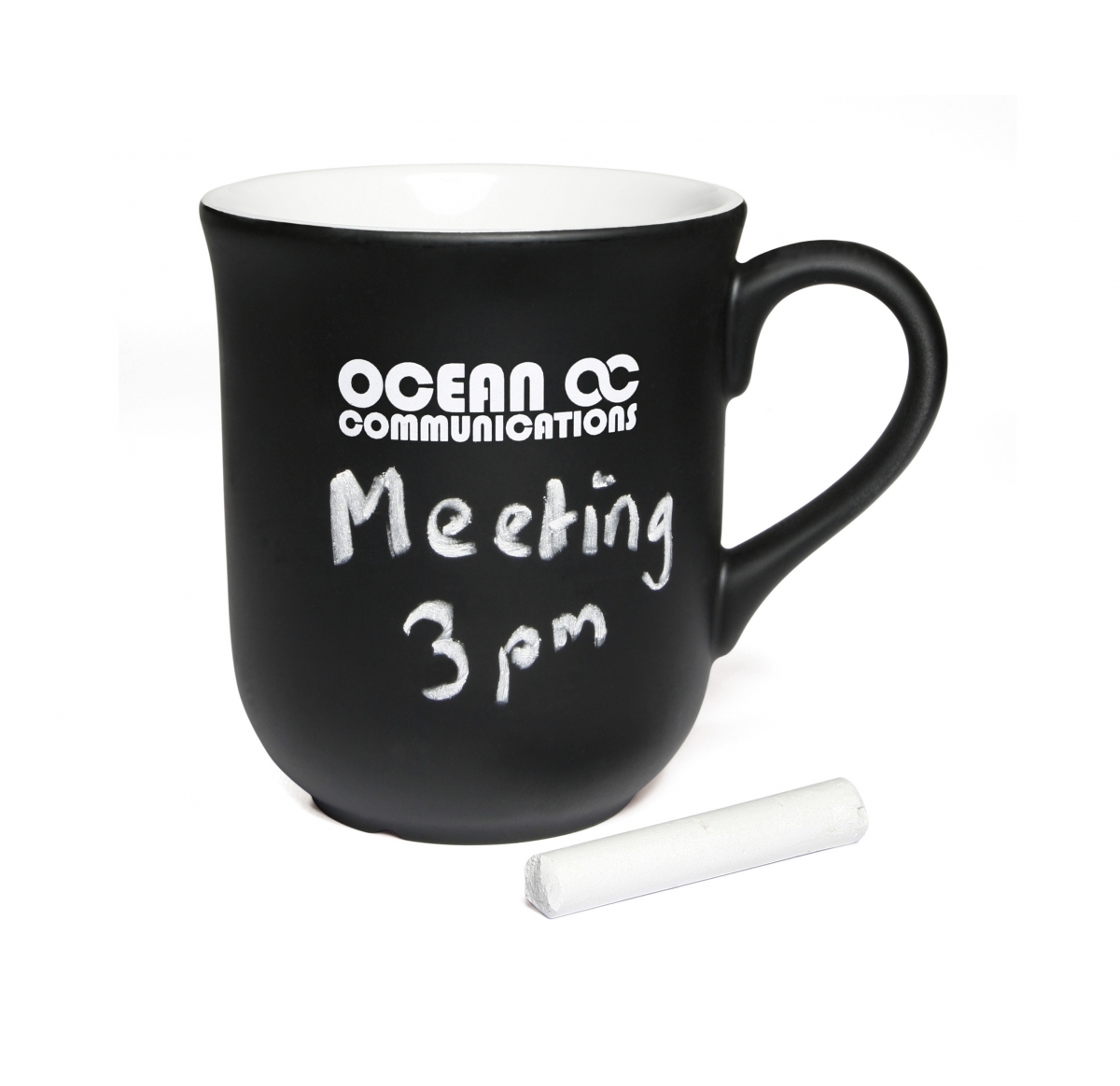 Fun and interactive chalk mugs supplied with a piece of chalk, enabling the user to write their own message on the mug.