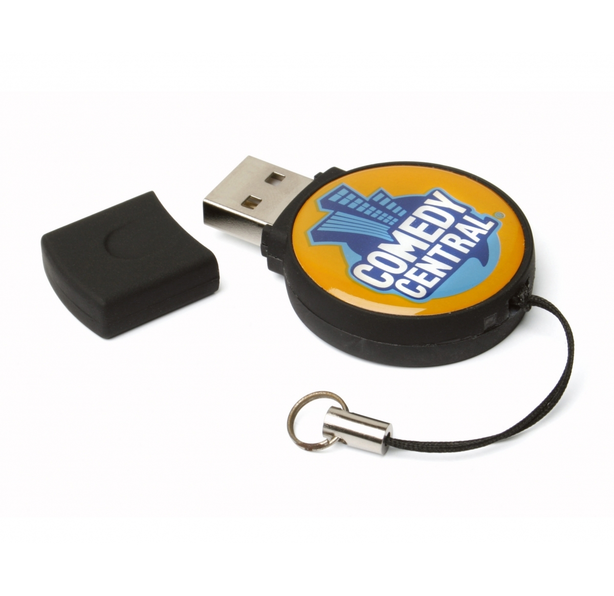 Rubber coated, circular shaped FlashDrive with 4 colour process bubble domed labels on both sides. Available in 5 standard colours. A practical product which will be used time and time again.