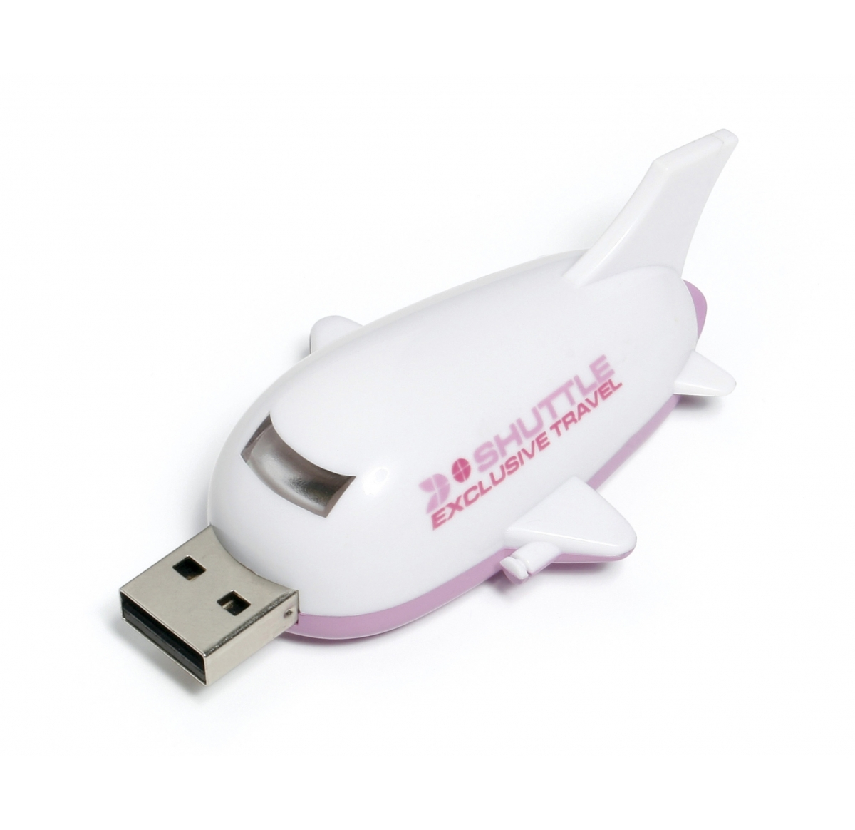 Aeroplane shaped FlashDrive with sliding USB plug, eliminating the need for a separate lid. Why not extend your promotional message with data loading? Please contact us for details.