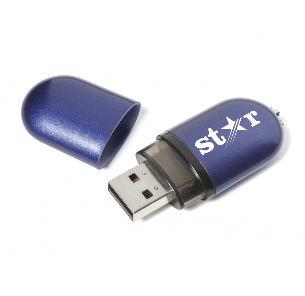 Smooth, rubber coated capsule shaped FlashDrive with four available print areas. Available on epxress delivery.