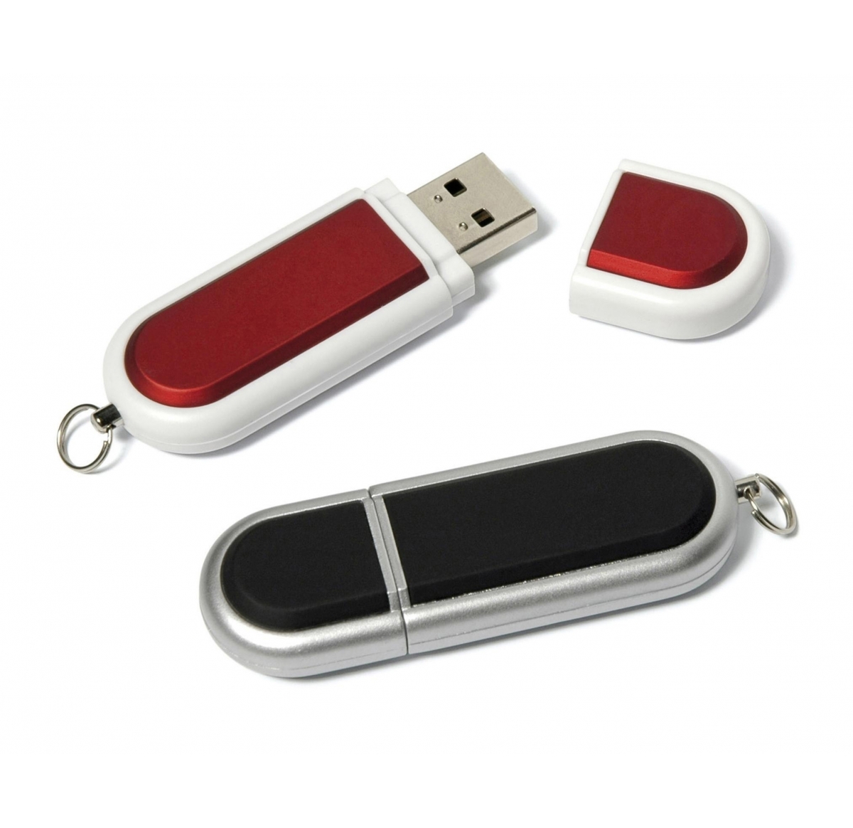 Simple but smart soft touch rubber coated FlashDrive surrounded by either a white or silver plastic trim. A practical product which will be used time and time again.