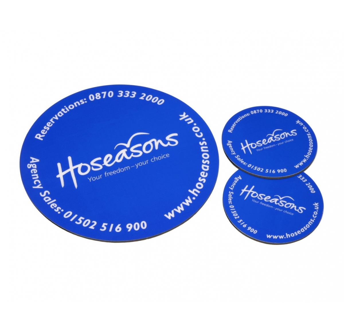 Popular and effective advertising tool. No-one wants to break up a matching set! Sets comprise one mat and two coasters packed into a clear, unprinted self-seal bag. SoftMats are manufactured from a specially formulated material with superb lay flat, non-slip qualities.
