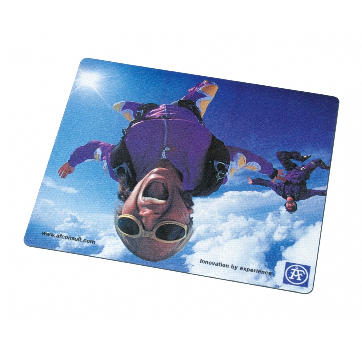 Textile topped mouse mat permanently printed in full colour by dye sublimation for exceptionally bright and vivid results. Using a promotional mat keeps your message in prime position on your clients desk.