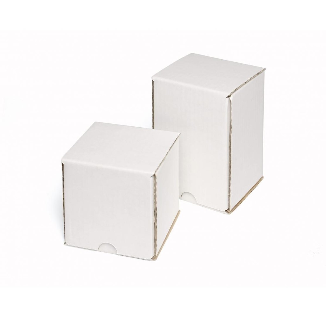 A white corrugated card box for individually packaging mugs. Ideal if you are mailing mugs or just as a presentation box. Can also be printed to enhance your message. Suitable for Small Latte, Milan, Quadra, Torino, Boston, Black Panel