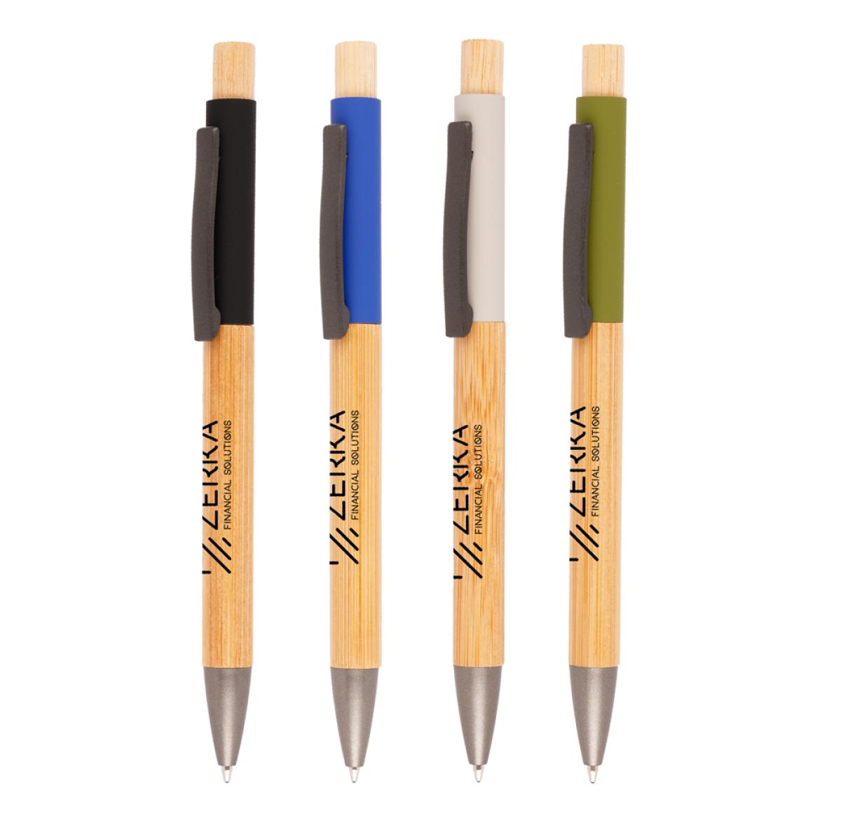A promotional bamboo ball pen with aluminium soft feel upper barrel and stylish gun metal trims. The contrasting upper barrel of the pen really makes this bamboo pen stand out from the rest, making it the perfect promotional item! Crafted with a bamboo barrel and featuring an aluminium soft feel upper barrel, this makes the pen have a unique feel in your hand. The contrast between a natural feeling pen and a luxurious soft feel pen at the same time makes this a very unique writing instrument that is perfect for exhibitions, trade shows and other corporate events! If you want style and luxury, this is the pen you have been looking for! This pen will draw attention whilst also leaving a positive impact on the environment. Order now and stand out from the crowd!