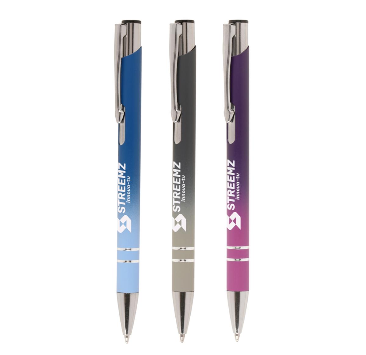 An aluminium ball pen that offers excellent value for money, perfect for enhancing your brand visibility through corporate gifting or promotional events. This branded pen has a sleek metal clip for a higher-end feel, making it ideal merchandise for trade shows and exhibitions. Its stunning ‘ombre’ effect ensures it stands out as a memorable promotional piece. Additionally, the pen can be customised with your company logo, allowing it to serve as an effective advertising tool that aligns with your brand identity. Give your campaign the wow factor – order now!