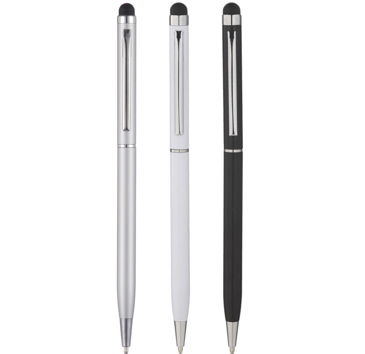 An elegant, slim twist action ball pen with a soft stylus at one end for use on all those touch screen devices.