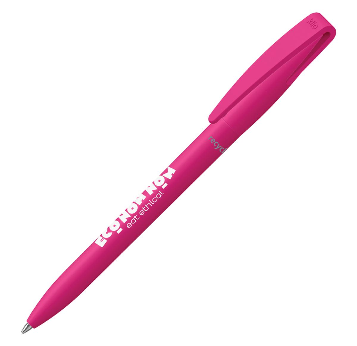 A modern twist action ball pen that has been engineered from ABS plastic and boasts an impressive 100% recycled rate. Made in Germany using climate-neutral production and 100% green electricity. This promotional pen is made to order and you can customise the individual parts of the pen, which includes the barrel, upper barrel and the clip. You can pick between a wide range of 14 different standard colours and from 5000pcs you can even pantone match the whole pen! This elegant twist action pen is sure to stand out, not only with your colour combinations, but also the sleek and precise design will catch the attention of anyone. Supplied with a quality Silktech refill, made of recycled PP material, that is guaranteed to have a write out length of 3000m and can be supplied in blue or black ink. A combination of precise design and engineering oozes quality and ensures a writing experience like no other. The credentials are not just limited to the pen either! The pens are supplied in Bio foil bags which are made up of 80% renewable raw material and are 100% recyclable. This product is guaranteed to stand out and is the perfect way to advertise your brand through a unique design.