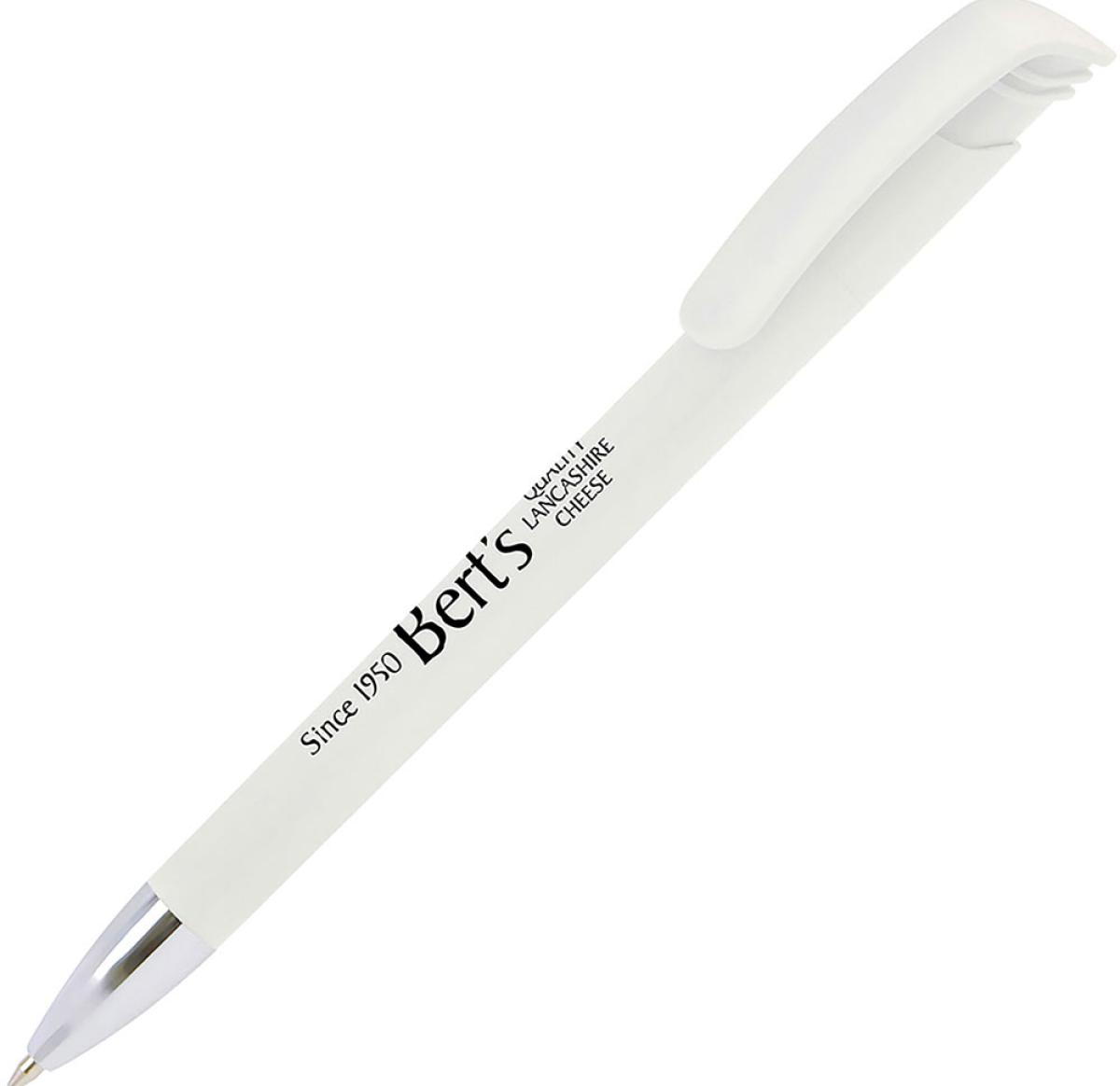 A quality feel from this well finished push action ball pen with a real metal nose cone. Great print area.