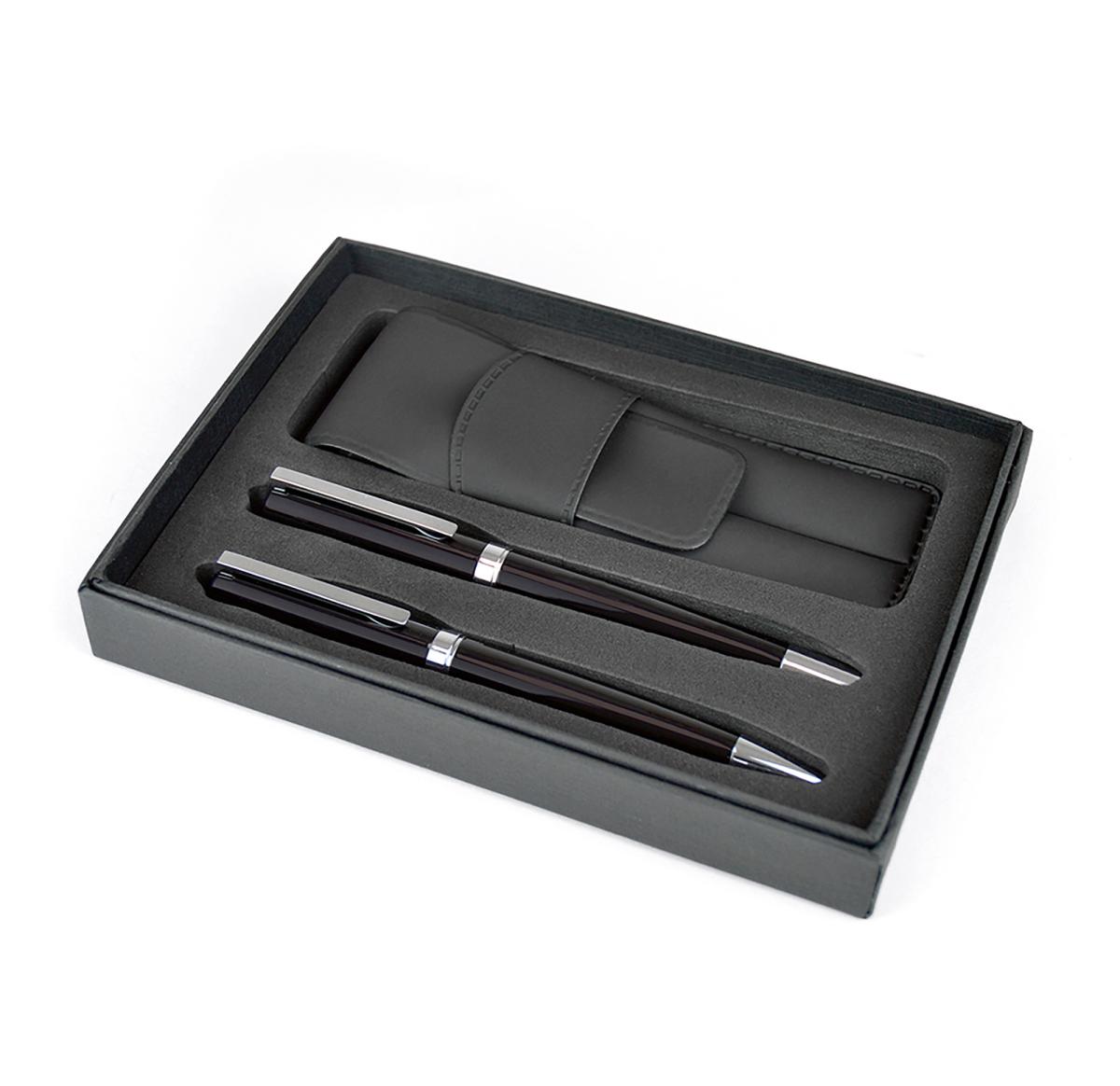 Consort box with pouch containing the Ambassador ball pen and rollerball. Price is for both writing instruments printed in 1 colour (same design/colour)