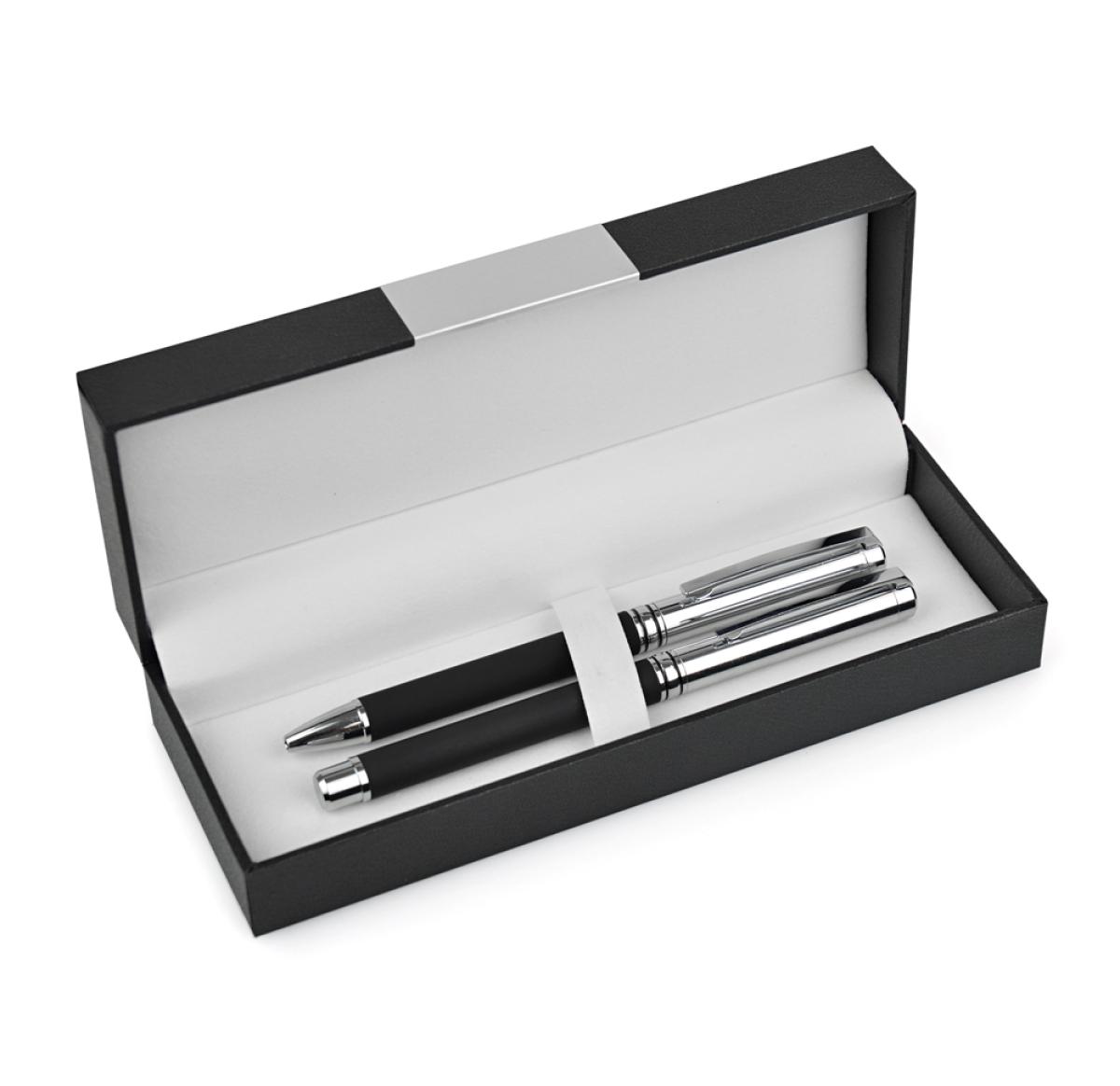 This elegant set is offered in either gloss black, gloss white or soft feel black finish. Supplied in our Sophos gift box. The gloss pens can be printed or engraved whilst the soft feel barrel version is engrave only. All versions have a chrome undercoat for a mirror engrave. Prices are based on both writing instruments being personalised with the same design/colour. Price is for both writing instruments printed in 1 colour, gloss finish (same design/colour)