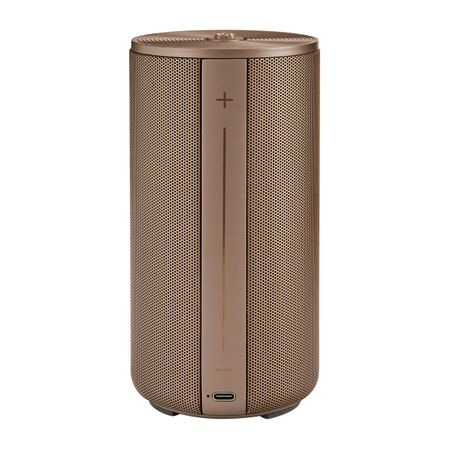 The Elemental large speaker combines portability with a refined, architectural presence, highlighted by its metallized finish and clean vertical detailing. The Double B logo crowns the main control button, while the subtle BOSS signature grounds the design. Delivering a clear and engaging 20 W output (2×10 W), the speaker offers ten hours of autonomy and convenient USB-C charging. Available in black, silver, and metallized camel.