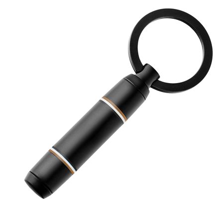 This keyring features a strong, graphical design inspired by a varsity style, delivering a clear and contemporary expression. Crafted exclusively in black, it is defined by a bold Double B logo with a crisp white outline, framed by ultra-slim iconic stripes that create sharp visual contrast. Matte black trims reinforce the modern look, while an engraved HUGO BOSS signature adds a refined detail. The tubular shape ensures a clean, functional profile suited for everyday use.
