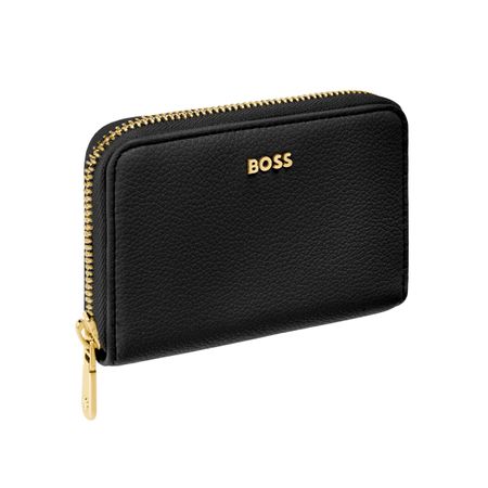 This classic zipped compact wallet is crafted from carefully selected grained matte PU with a soft, refined hand feel. The design is highlighted by a BOSS logo signature plate on the front and complemented by newly developed light gold?plated zippers featuring a Double B detail. Designed to be both compact and functional, it features four card slots with two on each side and a central zipped compartment for secure storage. Finished entirely with light gold trims for an elevated and luxurious touch, the wallet is available in a soft color palette including black, burgundy, taupe, nude, and lilac.