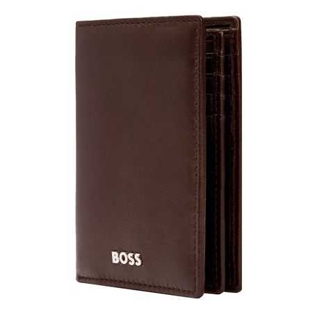 The Boss Classic Smooth line is Boss ultimate minimalist, timeless small leather goods offering, characterized by carefully chosen leathers and understated aesthetics. All pieces are masterfully crafted and signed with crisp chrome Brand plates, along with monogram linings. The designs are available in black and brown. This card holder with flap includes : 2 currency compartments 16 card slots 5 side compartments