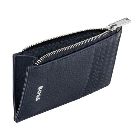 The Classic Grained line is crafted from carefully selected top-grain leathers, defined by a grained texture that conveys a timeless and sophisticated appeal. Each piece is skillfully assembled and beautifully finished with a crisp chrome BOSS signature plate and a tone-on-tone monogram lining, highlighting refined craftsmanship. Available in navy, camel, and black, this zipped card holder is designed around a spacious main zipped section with a gusset, and features five card slots on the front ? balancing practicality with understated elegance.