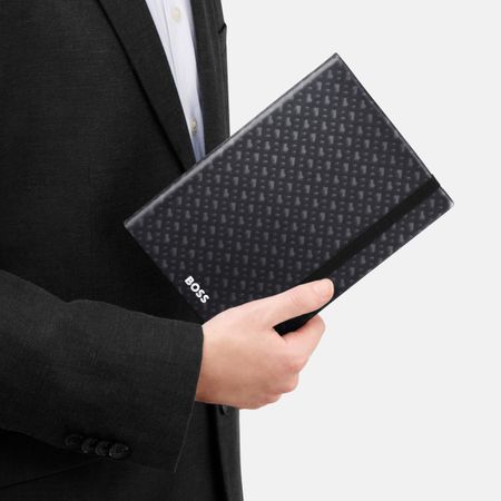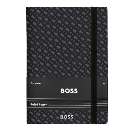 Celebrating the ubiquitous BOSS monogram with a neutral and understated palette, this grey A5 notebook features a luxurious silver foil logo with a matte finish. Part of the Elemental series, it includes 192 lined pages of 80gsm paper, a vertical elastic closure, and a practical page marker, combining style and functionality.